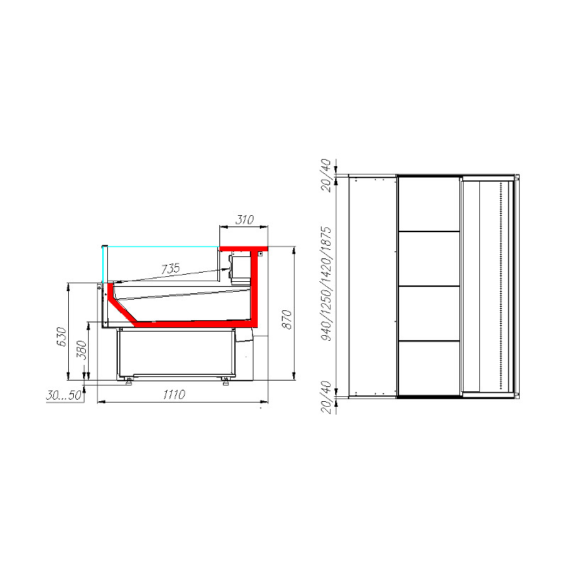 - 2х ступенчатые поддоны для выкладки. Общая высота поддона -120 мм, общая глубина-480мм